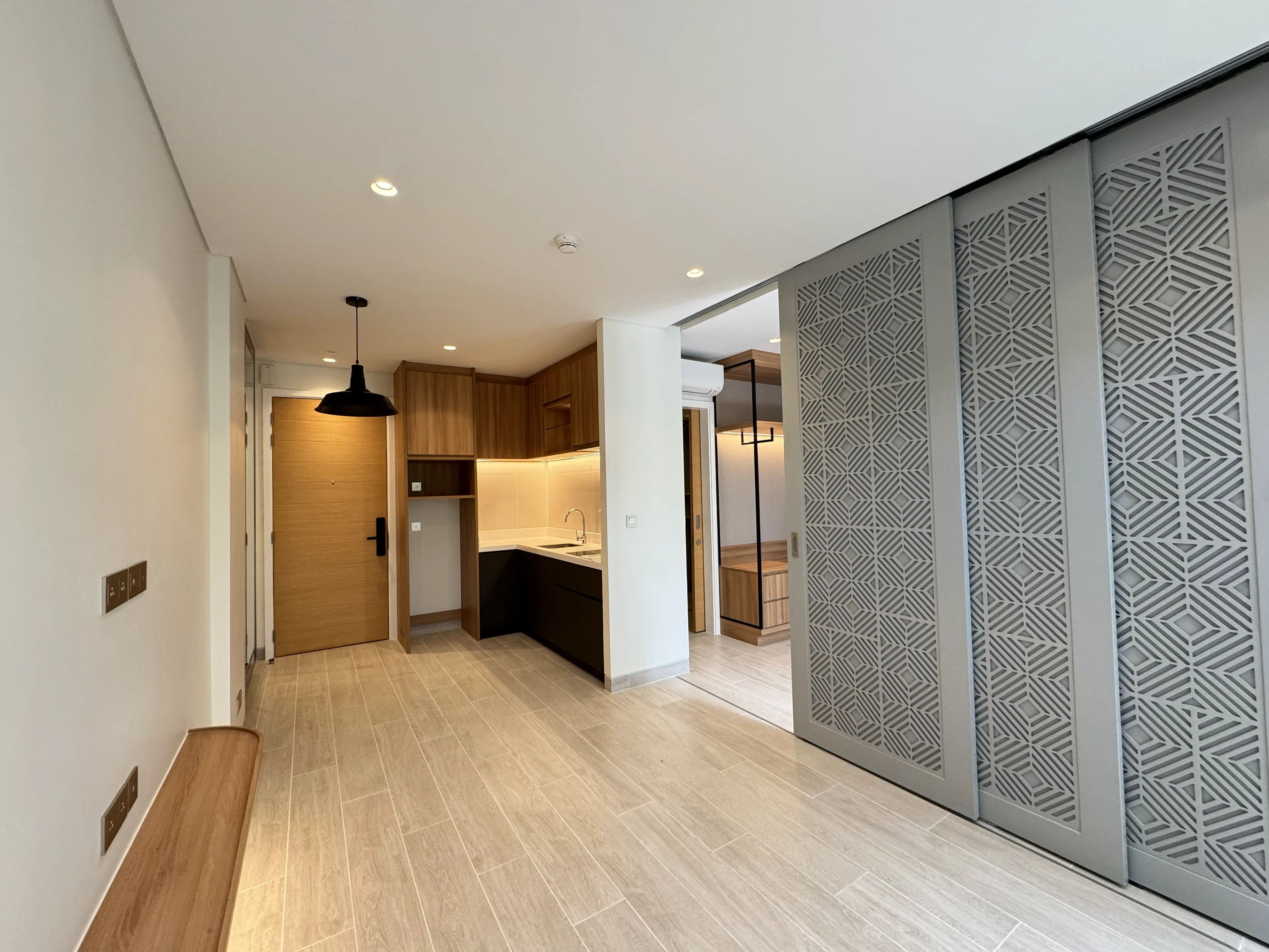Turnkey finishing, built-in furniture, a fully equipped kitchen, and air conditioning. Loose furniture is optional.