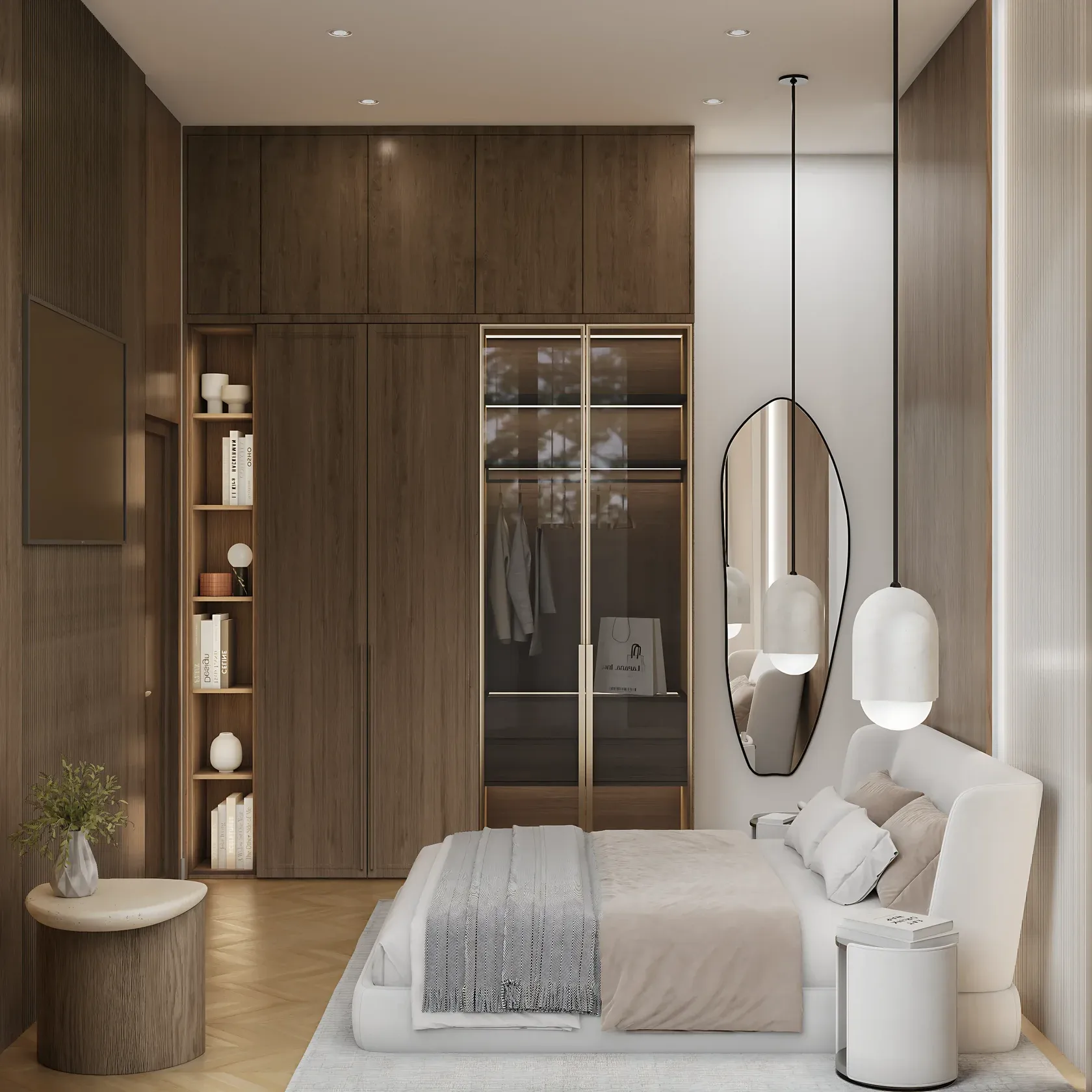 A key design concept is the seamless connection between indoor spaces and nature, enhanced by private courtyards, landscaped greenery, and soft architectural lines.