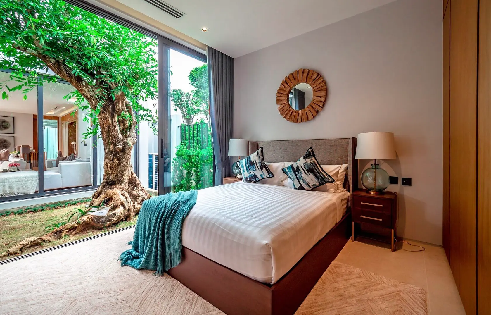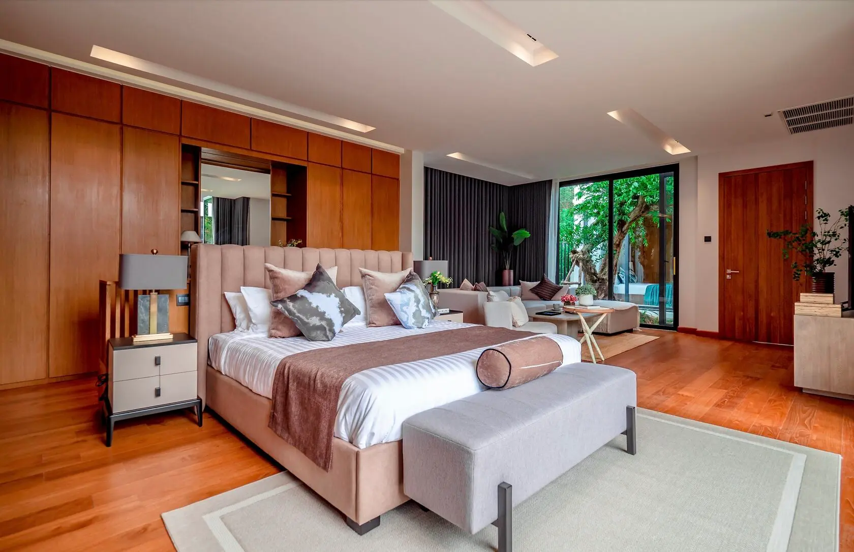 Villas are delivered with air conditioners, wardrobes, wall finishing, kitchen furniture, and landscaped gardens (if purchased without the furniture package).