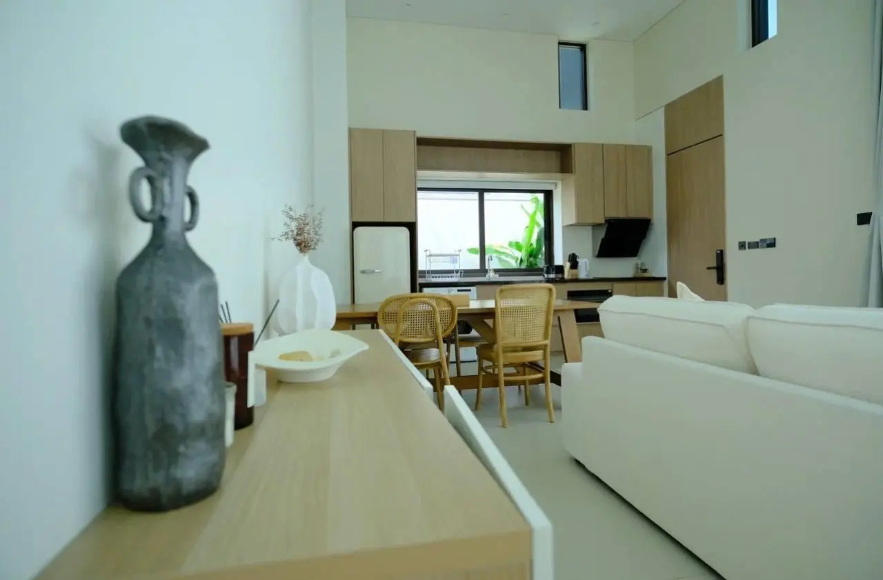 Каждая вилла имеет приватный двор, продуманную планировку, функциональные зоны отдыха и собственный бассейн. Архитектура выполнена таким образом, чтобы сохранять баланс между приватностью и открытыми зелёными видами.